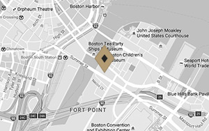 The downtown Boston office is located in the Fort Point area of Boston’s Sea Port District (South Boston Waterfront). Upon entering the building, take either the elevator or stairs down a level.